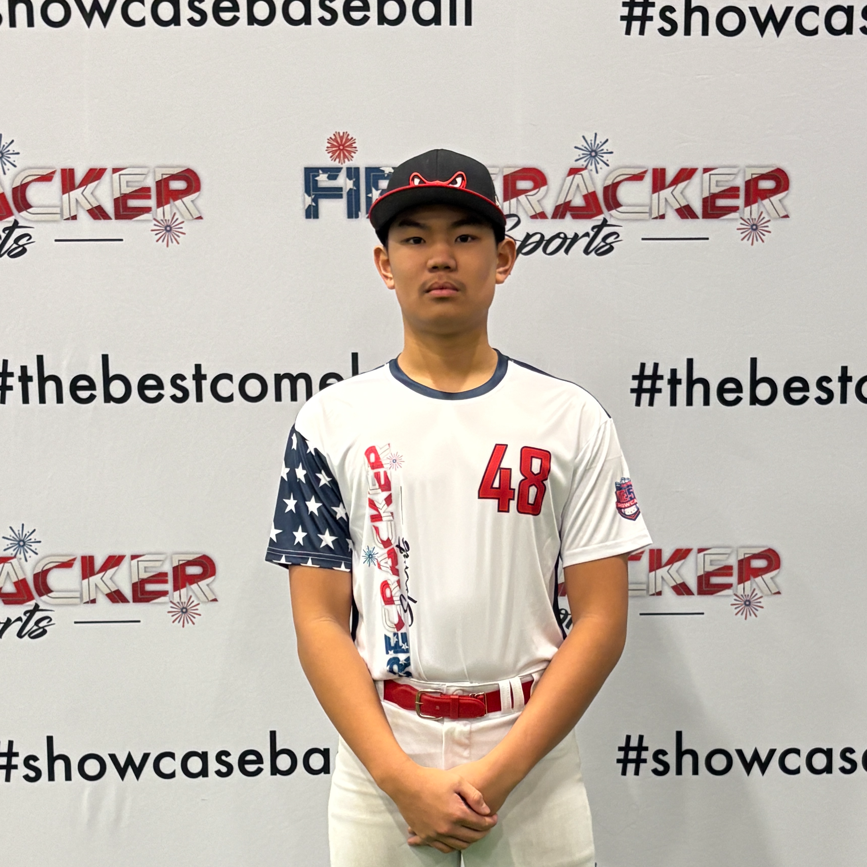 Work on speed, work on transition in OF, throws it well from OF, load earlier in swing, lots of arms during swing, use legs, shorten up. Shorten arm action pitching, more similar to OF throw. Be athletic.
